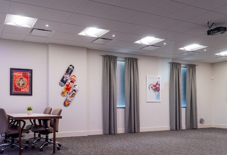 Contemporary creative office space with an industrial design and multi-level lighting fixtures. Located in South Austin with easy access to Southpark Meadows, Downtown Austin, Austin-Bergstrom International Airport.